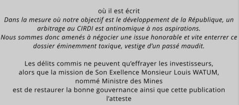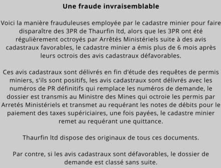 Thaurfin ltd cherche un partenaireLes 3PR 1323, 1324 & 1325 étant valides et en force majeure, les associés de Thaurfin ltd propose la vente d’une fraction de leur actionnariat à tout investisseur afin de les développer ensemble et de profiter des lourds dommages-intérêts que la spoliation a généré