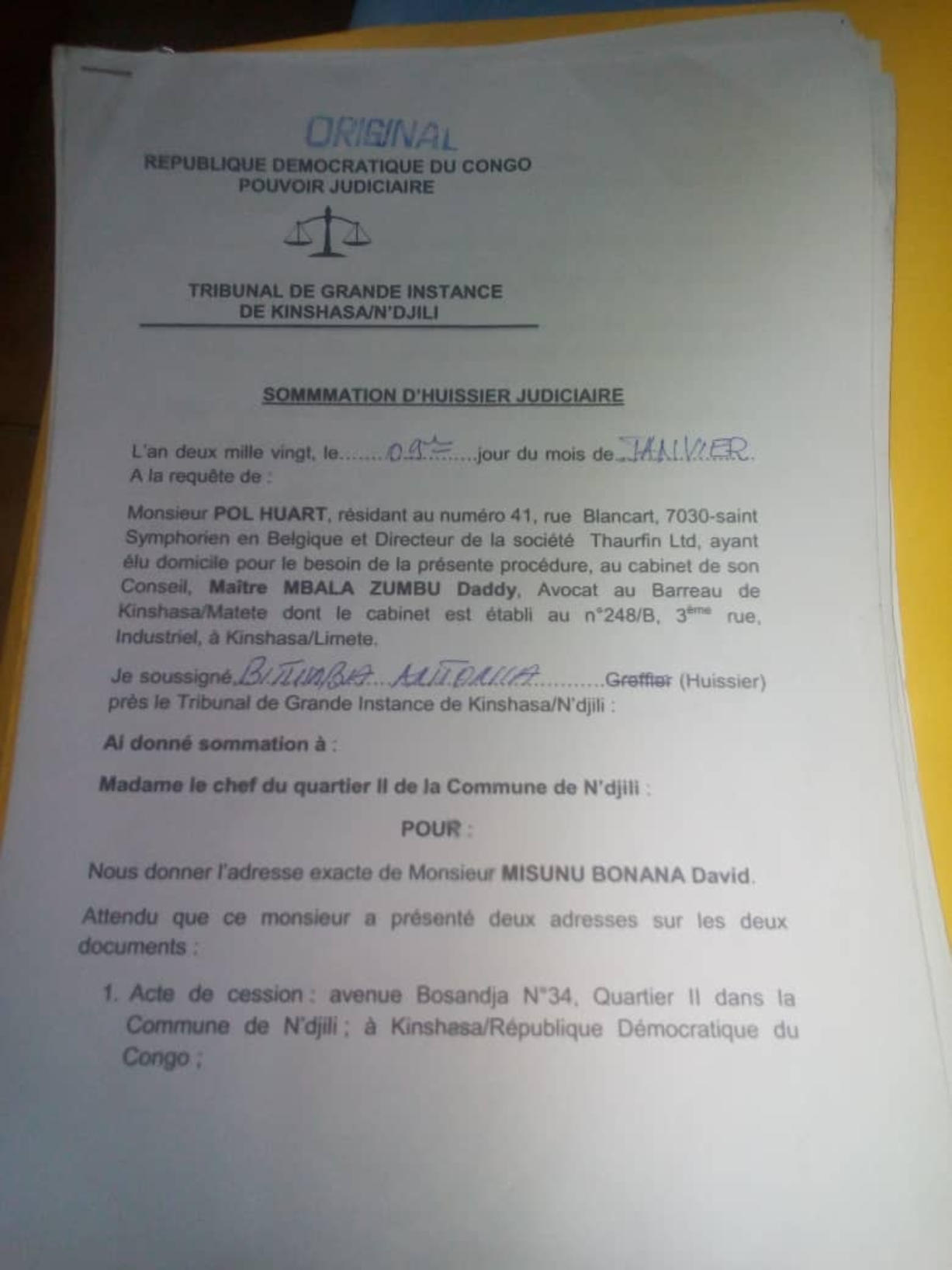 Voici les documents obtenus par Me Daddy Mbaba relatif à Mr Bonana Misunu David.