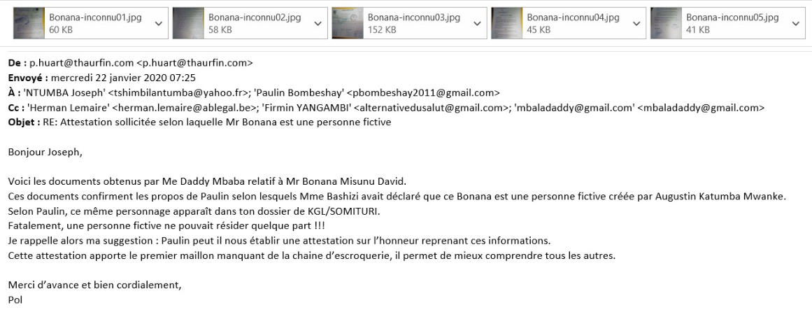 CAMI, Mme Bashizi, selon laquelle Mr Bonna Misunu David est une personne fictive créée par Augustin Katumba Mwanke.