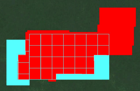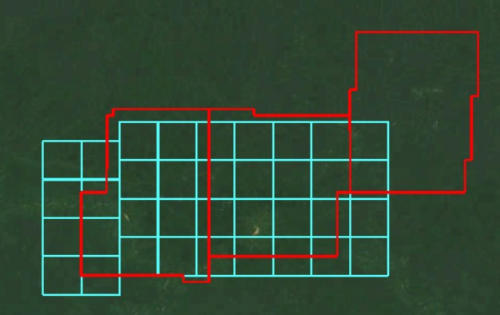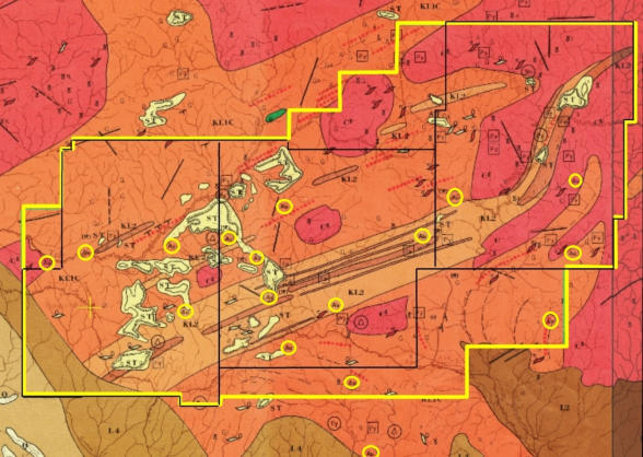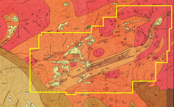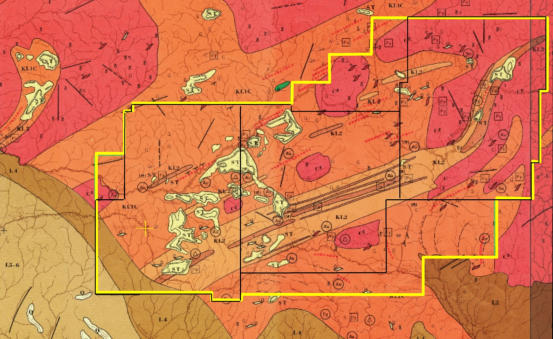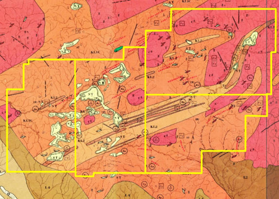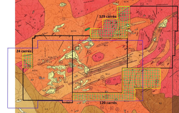 couvrant au mieux les gisements d’or et de fer (voir calque disposition avant et après sur la carte géologique)