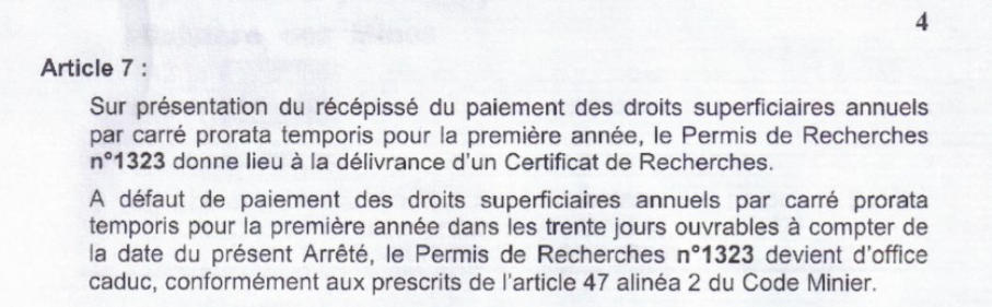 G - Création de la nouvelle société minière congolaise Mbomo Mountains SARL