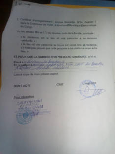 ATTESTATION SELON LAQUELLE MR BONONA MISUNU DAVID N’A JAMAIS RESIDE AUX