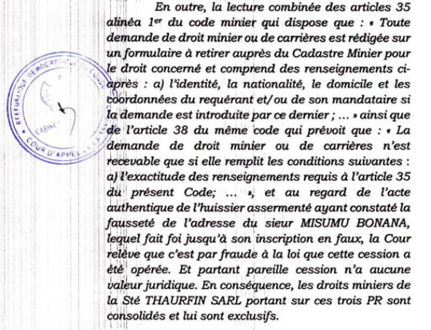 Il n’est pas inutile de préciser que le cadastre minier a toujours refusé de