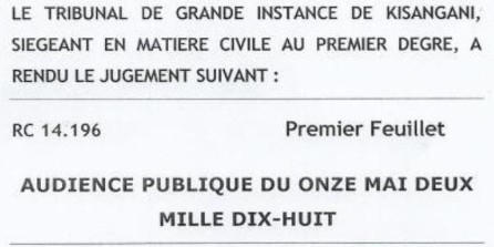 Le jugement RC9842 a été prononcé par le Tribunal de Grande Instance de Kisangani le 22 mars 2011 (