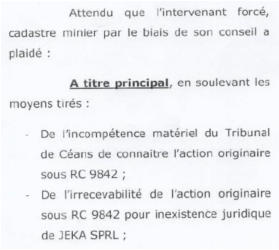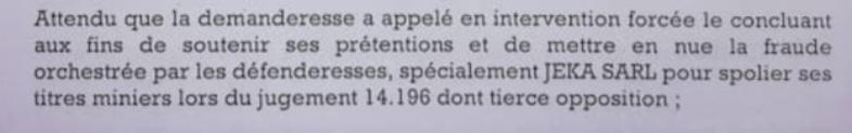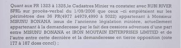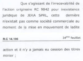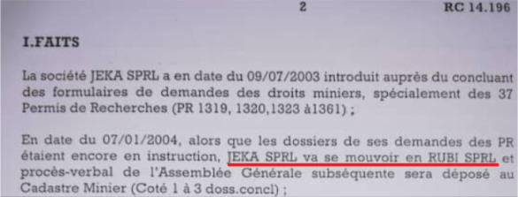 ne l’était pas. Sans être réformé de facto, JEKA était dépossédée de ses droits miniers au profit de Rubi River.